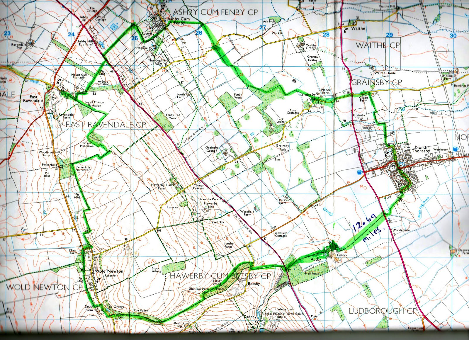Wikiloc | On Top of the Wolds leið í Louth, England (United