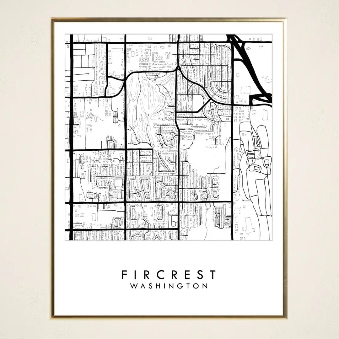Fircrest City Lines Map Art Print โ Paper Luxe